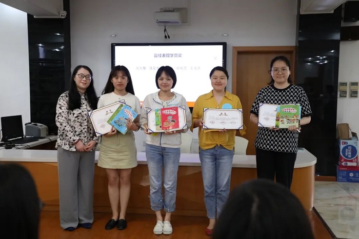 本次教育戏剧工作坊在参会教师的欢声笑语和热烈讨论中进入尾声。外研社英语教育出版分社社长助理、策划部主任蒲善娟主持了颁奖典礼,北京教育学院教师柯丹及外研社英语教育出版分社社长邢印姝分别为“优秀学员”及“最佳表现学员”颁发证书,并向学员们致以诚挚的祝贺。