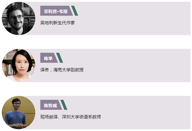 8月19日,奥地利新生代作家菲利普·韦斯和复旦大学教授、作家、文学评论家王宏图,现场翻译、深圳大学德语系教师陈智威将一同来到思南文学之家,打破经典叙事,探测文学边界,与读者共话人类世写作与文学“乌托邦”。