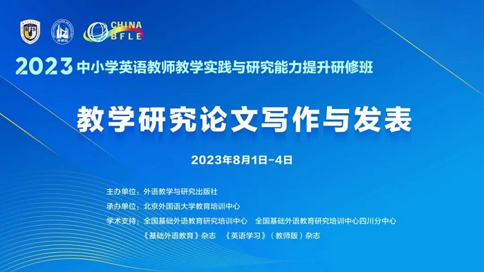 8月1日至4日,由全国基础外语教育研究培训中心学术指导,北京外国语大学教育培训中心、外语教学与研究出版社(以下简称“外研社”)联合组织的“中小学英语教师教学实践与研究能力提升研修班——教学研究论文写作与发表”研修班顺利举办。来自全国18个省、自治区、直辖市的中小学英语教师参加了研修,共同研习教学研究论文写作的方法和技巧。本次也是外研社面向青海、河北提供教育帮扶的重要活动之一,来自河北省迁西县第一中学、青海油田第一小学、青海油田第三小学、青海油田第一中学、青海油田第二中学、青海油田昆仑石油中学、青海三江源民族中学的25位教师参加了学习。研修通过主题讲座、案例分享、小组讨论、展示汇报、专家点评等方式,从研究选题、论文写作、投稿发表等方面进行深入指导,旨在提升中小学英语教师的教学研究和成果转化能力。