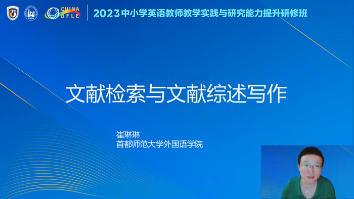 四川师范大学教授郑鸿颖和首都师范大学副教授崔琳琳进行了“课例论文设计与写作”和“文献检索与综述写作”的专题讲座,并分别主持了研修工作坊,带领老师们酝酿研究选题、进行实操演练,对每个小组的成果汇报进行了点评和指导。通过两位专家系统的讲解和针对性的答疑反馈,老师们获得了理论与实践能力的提升。《英语学习》期刊编辑部的王晓涵老师受邀分享了编辑审稿过程中常见的写作问题,并详细介绍了期刊的基本概念和分类以及投稿注意事项等,为老师们提供很多具体建议。
