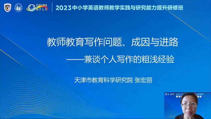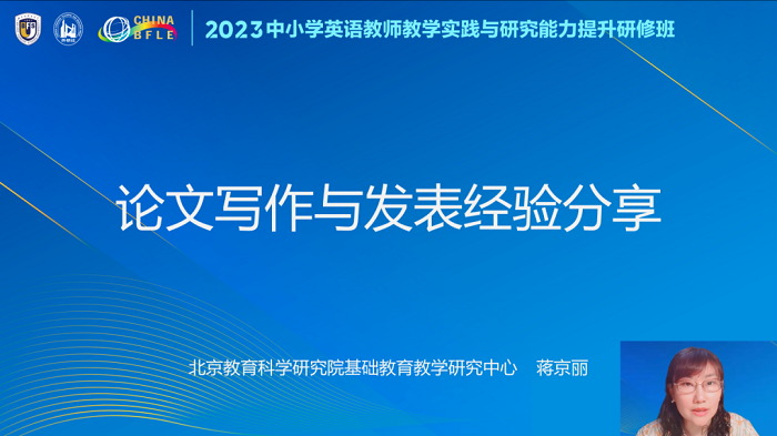 北京市教育科学研究院基础教育教学研究中心中小学外语教研室主任蒋京丽老师和天津市教育科学研究院小学英语学科教研员张宏丽老师进行了教学研究论文写作与发表的经验分享。两位老师严谨的治学态度和勤奋的钻研精神为老师们树立了优秀的榜样,激励大家在教学工作中勤于积累、深入钻研,不断获得专业成长。