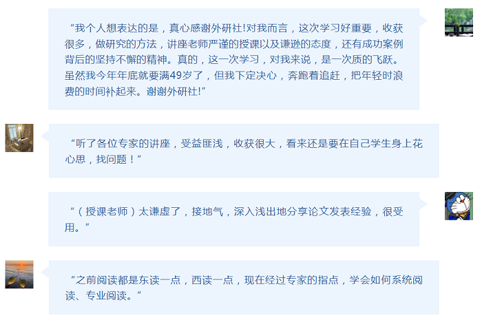 为期4天的研修班激发了老师们参与教学研究的热情,也为老师们指明了进行教学研究论文写作的方向和路径。相信通过本次学习,老师们会在教学研究探索的道路上更进一步,取得更多成果。