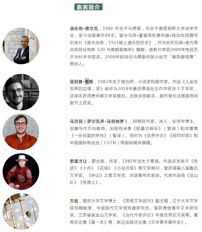 8月17日(周四)晚7点,中外作家洛伦佐·席尔瓦、菲利普·韦斯、马济民、索南才让、方岩将来到朵云书院·滴水湖店,就自己眼中的世界、生活和文学等话题展开精彩讨论。