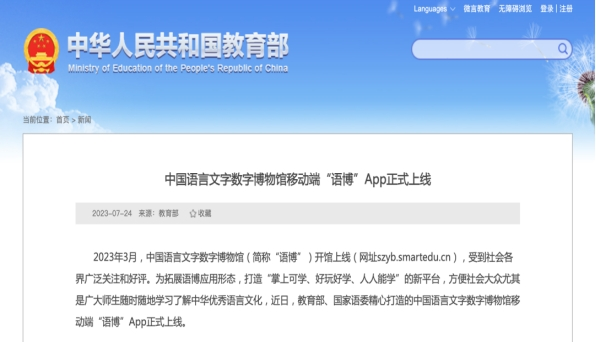 2023年3月,中国语言文字数字博物馆(简称“语博”)开馆上线(网址szyb.smartedu.cn),受到社会各界广泛关注和好评。为拓展语博应用形态,打造“掌上可学、好玩好学、人人能学”的新平台,方便社会大众尤其是广大师生随时随地学习了解中华优秀语言文化,近日,教育部和国家语委精心打造、北京外国语大学及外语教学与研究出版社作为共建单位之一参与建设的中国语言文字数字博物馆移动端“语博”App正式上线。