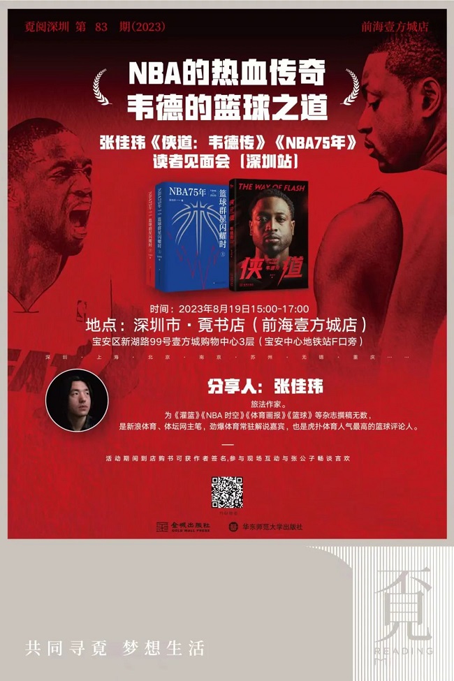 2023年8月19日15:00-17:00,张佳玮将作客覔书店,和深圳的朋友分享“NBA的热血传奇、韦德的篮球之道”!