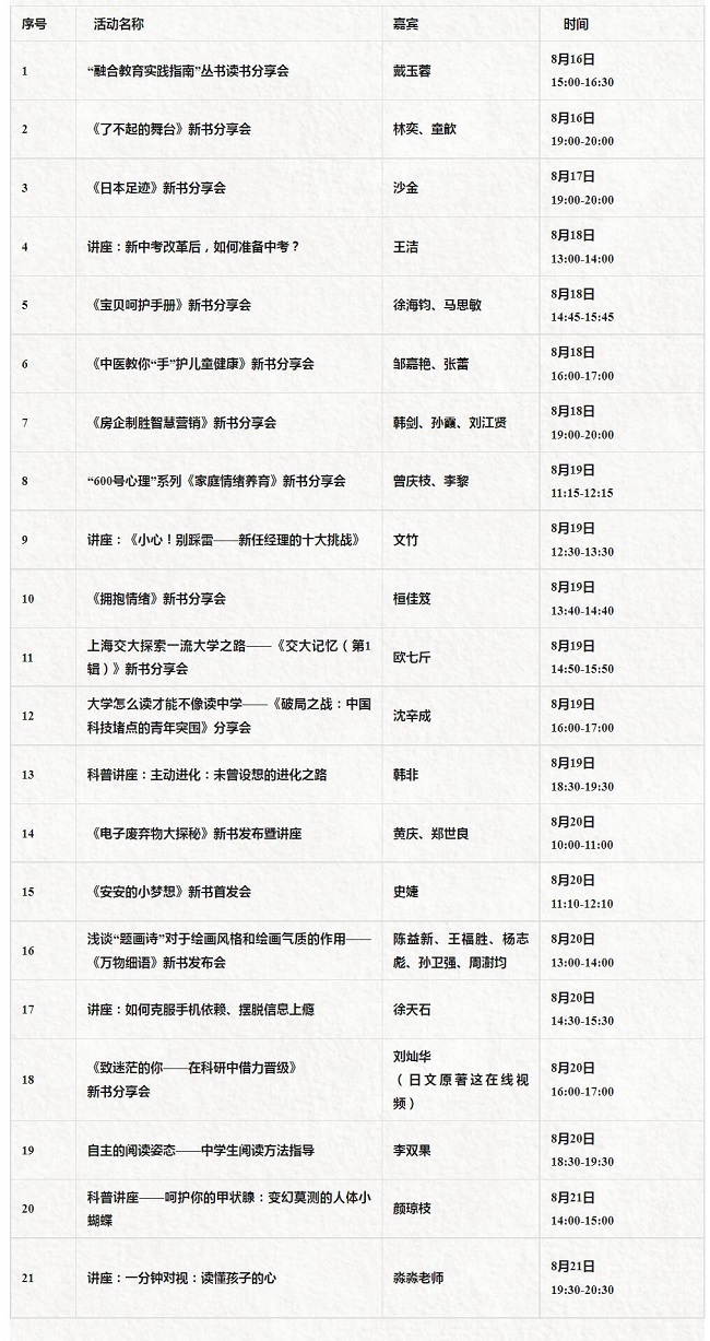 书展线上活动预告