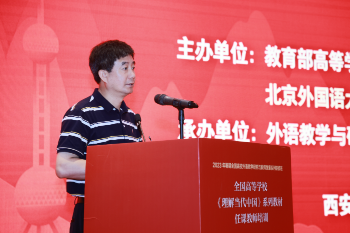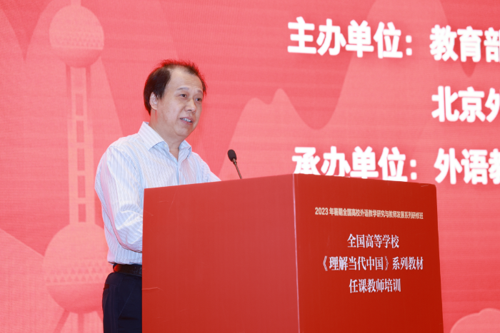 2023年8月2—3日,由教育部高等学校外国语言文学类专业教学指导委员会、北京外国语大学主办,外语教学与研究出版社承办的“全国高等学校《理解当代中国》系列教材任课教师培训”成功举办。教育部高等教育司相关负责同志、省级教育行政部门相关负责同志、教育部高等学校外国语言文学类专业教学指导委员会委员、《理解当代中国》系列教材编写团队和各语种任课教师共计4万余人线上线下参会,深入领会“三进”教学要求,提升教师育人育才能力,推动外语自主知识体系创新,共助高等外语教育高质量发展。