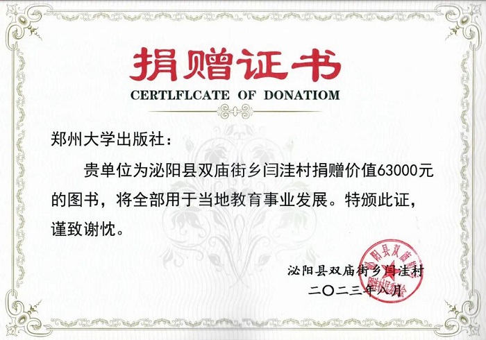 郑州大学出版社党总支书记、董事长汪流明,社长、总编辑孙保营参加了本次活动,并代表出版社向闫洼村捐赠价值6.3万元的图书。