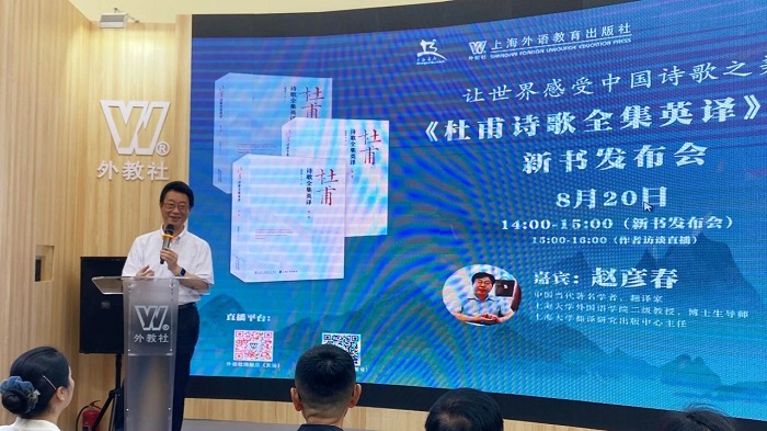 本书译者是上海大学赵彦春教授,他是上海大学“伟长学者”,国家社科基金重大项目首席专家。他表示,上海外语教育出版社在中华文化国际传播方面做出了巨大的贡献,出版了很多里程碑式的巨作。赵教授感谢上海外语教育出版社和上海大学出版社两家出版社强强联合,联袂打造此项学术成果。他随后也与大家分享了他翻译杜诗的心得与体会。