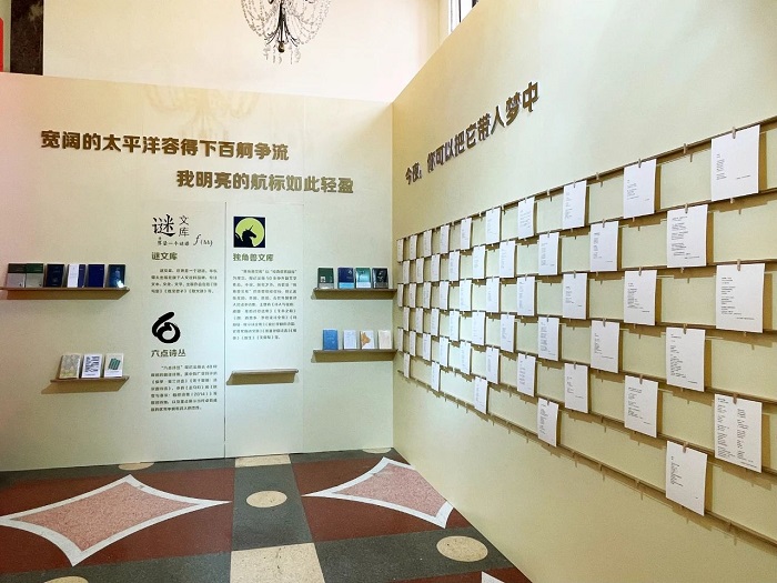 从“六点诗丛”“独角兽文库”“谜文库”等诗歌品牌中精选诗句汇聚而成的诗歌墙,打造了一方诗意的天地,让许多读者驻足停留,细细体悟诗歌的魅力。