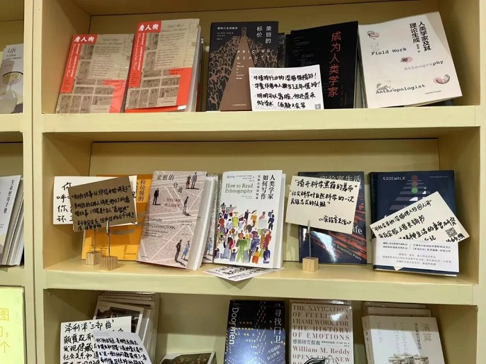 人文社科区展示了“六点”“薄荷实验”“独角兽文库”“教育心理”“大夏书系”等深受读者喜爱的人文社科、教育图书品牌,展位上,充满新意的编辑手写推荐卡也获得了读者的喜爱和关注。