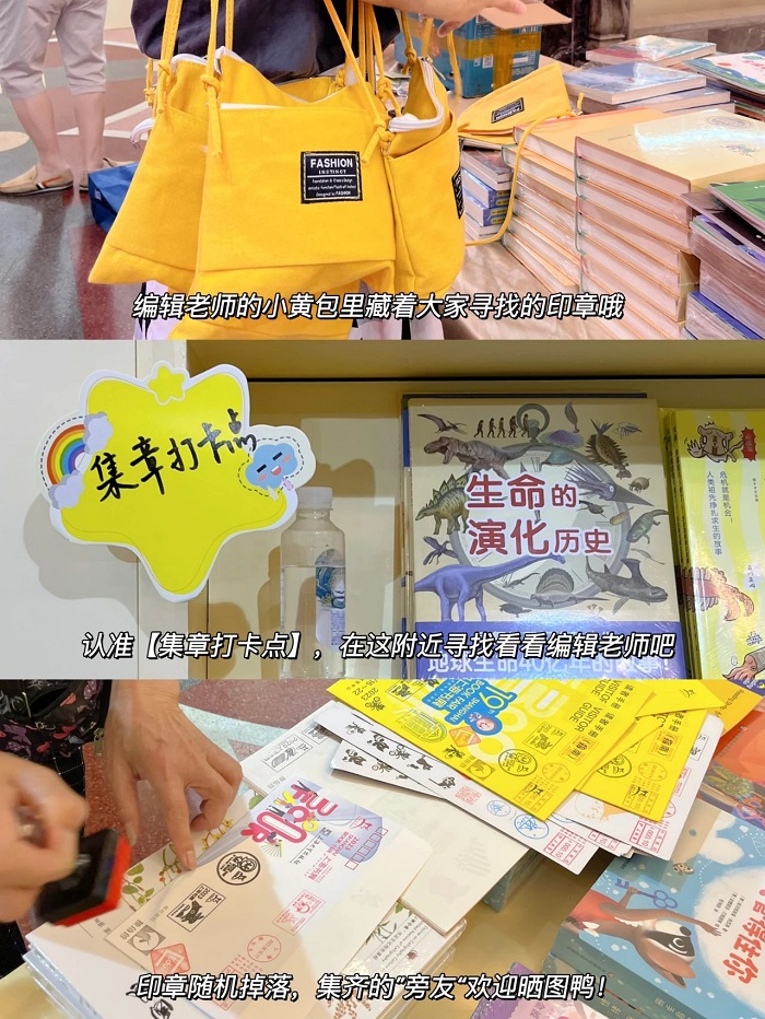 “集章”是本届书展的热门活动之一,华东师范大学出版社准备了18枚印章,全场任意消费即可获得集章本,在展位上寻找背小黄包的工作人员,盖满5个章还能参与扭蛋抽奖,让读者在“寻宝”的乐趣中,解锁众多精美礼品!