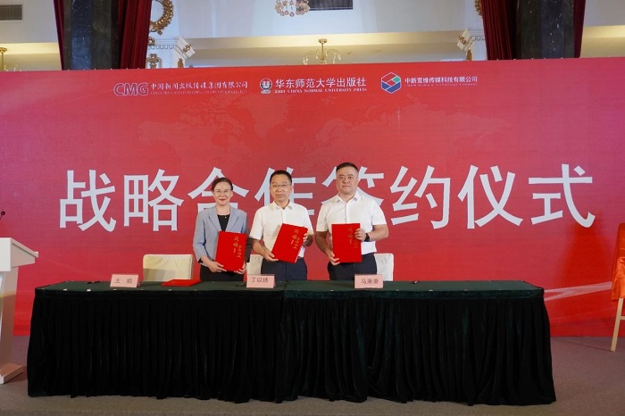 8月16日,中国新闻出版传媒集团、华东师范大学出版社、中新宽维传媒科技有限公司共同签署《战略合作协议》,并为华东师范大学出版社入驻中新宽维数字港·临港文化出海基地揭牌。