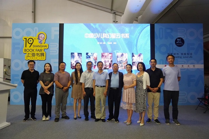 8月17日,“中国少儿科幻星云书系”品牌发布会暨星云奖少儿科幻论坛在少儿馆活动区顺利举行,与会嘉宾合影留念。