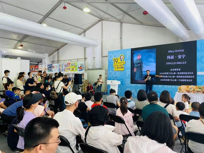 8月20日,何鑫在少儿馆活动区分享“万万没想到,你是这样的恐龙!”。