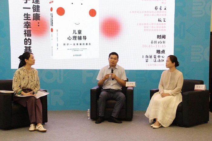 8月16日,朱仲敏、蔡素文、杭艺在第二活动区分享如何进行儿童心理辅导。