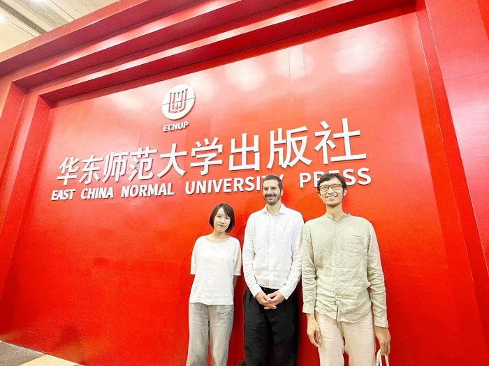 菲利普·韦斯、陈早、陈智威在华东师范大学出版社展位合影。