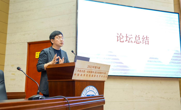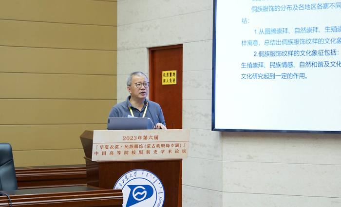 在论坛学术总结中,贾玺增教授介绍了本次论坛四个板块的设计思路。根据论坛的主题“民族服饰·蒙古族组服饰”,第一板块“历史:蒙古族服饰”直接点名主题;第二板块“文化:北方服饰”从更宏观的角度阐释民族服饰,是第一板块的延申,和第一板块形成互动;作为第三板块的“纹样:西南服饰”是民族服饰的深入阐述;第四板块“设计:传承创新”从设计实践的维度进行展开,和纹样板块相互支撑,相互补充。