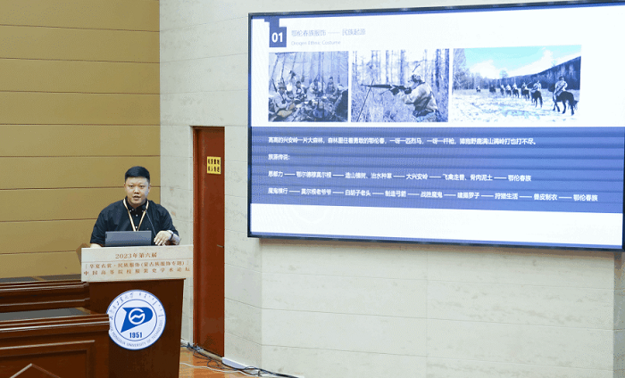 东北师范大学高明君副教授发言的主题是“鄂伦春族服饰的符号特征与文化内涵”。鄂伦春族是中华民族大家庭中的一员,世居于大、小兴安岭及黑龙江沿岸地区,属于典型的狩猎民族。高教授讲到,鄂伦春族服饰较为完整地反映出狩猎民族的服饰文化,从服饰造型、材质、图案、功能等方面产生了令人印象深刻的民族符号,并承载着鄂伦春族在漫长的发展历程中所形成的道德品质、思想观念、行为习惯和民风民俗。鄂伦春族服饰的符号提炼与文化深耕,有助于鄂伦春族增强民族自豪、凝聚团结力量、继承优秀文化、弘扬光荣传统,为不断铸牢中华民族共同体意识积蓄精神动力。