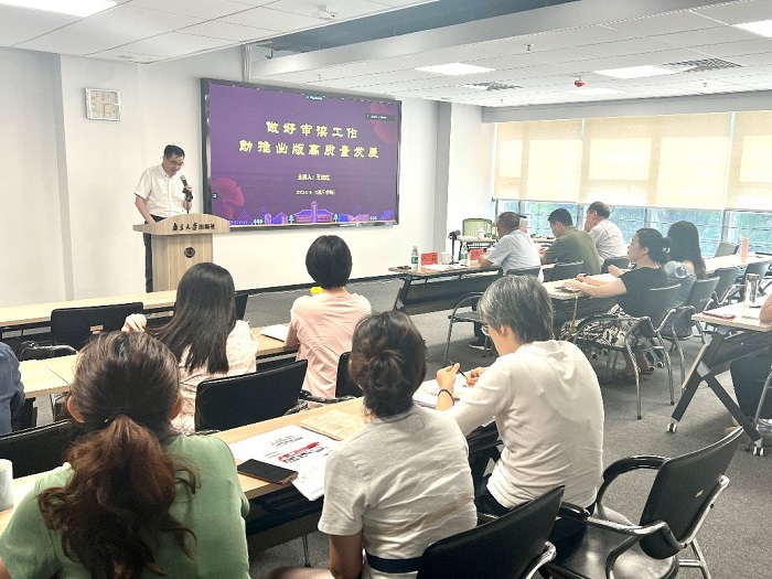 8月18日,江苏省委宣传部、省新闻出版局审读专家“讲师团”审读员、南京师范大学出版社原总编辑、南京师范大学文学院三级教授、江苏省出版工作者协会编辑委员会主任王政红莅临南京大学出版社开展“做好审读工作,助推出版高质量发展”主题宣讲活动。本次活动由江苏省出版物审读中心主任马万佐领队。讲座由南京大学出版社总编辑石磊主持。