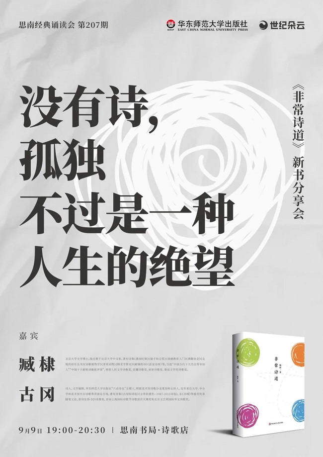 9月9日晚七点,臧棣老师及古冈老师一同来到思南书局·诗歌店,与读者们分享《非常诗道》的创作与诗歌。
