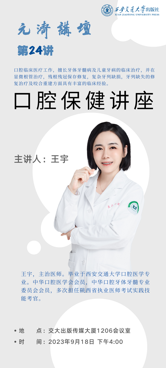 西安交通大学出版社口腔保健专题讲座预告(9月18日16:00)