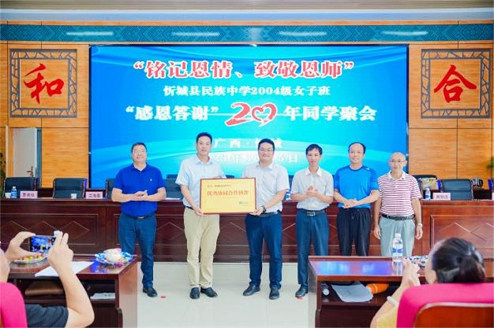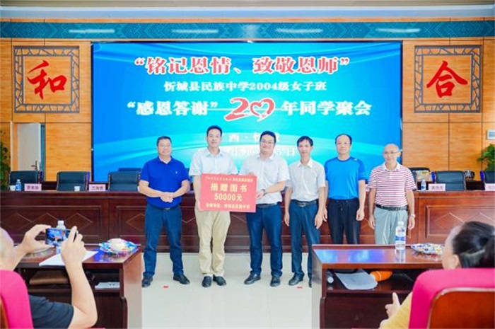10月5日,忻城县民族中学女子班感恩答谢会暨20年同学聚会在忻城民族中学报告厅举行。广西师范大学出版社集团党委副书记、纪委书记蓝廖国及结对子员工代表,忻城县教育体育局局长蓝雪峰,忻城县民族中学校长兰海景及教师代表,女子班同学代表30余人出席了本次答谢会。
