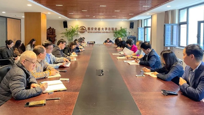 秦茂盛表示,第一,要认真学习贯彻全国宣传思想文化会议精神,守好意识形态阵地,坚持正确的出版方向,为我国文化建设奉献更多高质量的精神食粮;第二,要做好内部宣传,提升出版社品牌影响力,同时兼顾对外宣传,讲好中国故事,提升出版社的国际影响力,着力打造极具影响力的交大学术品牌;第三,要坚持“专精特新”发展道路,汇聚知名作者思想精粹,为我国哲学社会科学体系建设提供智力支持,联合西部地区大学出版社共同推动西部乃至全国文化发展;第三,强化党的领导,传播社会主义正能量,主动融入学校发展大局,为学校事业发展贡献交大出版人的力量。