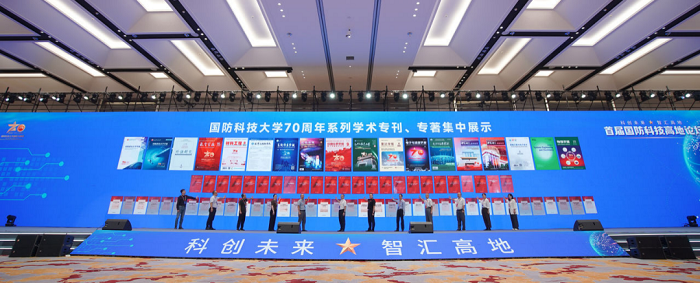 9月27日,国防科技大学建校70周年系列学术专著和专刊在首届国防科技高地论坛上隆重发布,国防科技大学教研保障中心主任欧阳红军代表国防科技大学出版社上台与其他出版社、期刊代表共同参与发布仪式。