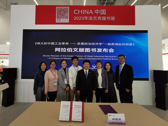 2023年10月19日,在第75届法兰克福国际书展上,清华大学出版社与黎巴嫩阿拉伯科技出版社在中国出版联合展台活动区举办《伟大的中国工业革命——“发展政治经济学”一般原理批判纲要》阿拉伯文版图书发布会。清华大学出版社社长邱显清、黎巴嫩阿拉伯科技出版社社长巴萨姆·谢巴鲁、上海交通大学安泰经济与管理学院文一教授、北京语言大学中东学院陆映波教授线上线下参加了本次活动。