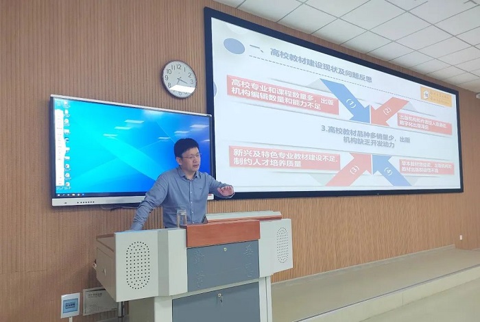 随后,孙保营社长在信阳师范大学社科楼120教室(报告厅)做了题为“高校教师教学科研与成果出版”的专题讲座,他从高校教材建设现状与问题反思、高校教师开展学术研究的必然要求、高校教师学术成果出版应然要求等方面,对当前高校教材建设存在的突出问题,教师开展科学研究的必然要求及对策,相关成果高质量出版等问题进行了系统阐释。最后,孙保营社长介绍了郑大出版社和郑大期刊中心的基本情况和近年来改革发展所取得的成绩,并希望与信阳师范大学更进一步深度合作,以学术成果的高质量出版提升大学的教学和科研水平。信阳师范大学相关院系教学副院长、教研室主任等60余人聆听了报告。讲座由该校教务处副处长张帆主持。