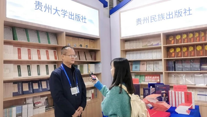 展会现场,贵州大学出版社社长闵军在接受贵州卫视、天眼新闻等媒体采访时介绍说,贵大社近年来围绕国家出版强国建设的总体规划,在主题精品领域探索开拓,在学术文化领域深耕细作,在普及全民阅读、打造书香社会领域创新求变,取得了出版工作的扎实发展和长足进步,此次精选了百余种精品图书参展,力求多角度、多层次、多形式集中宣传展示近年来的出版成绩。贵大社按照多彩贵州民族特色文化强省战略,大力实施精品工程,深入挖掘传承发展红色文化、阳明文化、民族文化、历史文化等,取得了一定成果成效。