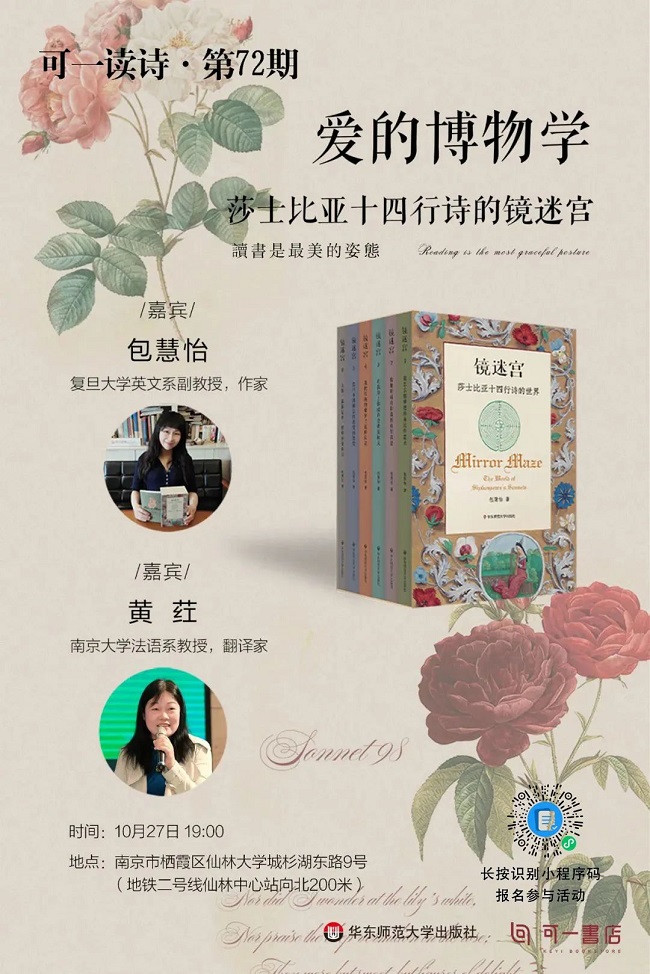 10月27日(周五)晚上,包慧怡老师,黄荭老师将和我们一起朗诵诗歌,一起走进莎士比亚十四行诗的镜迷宫。