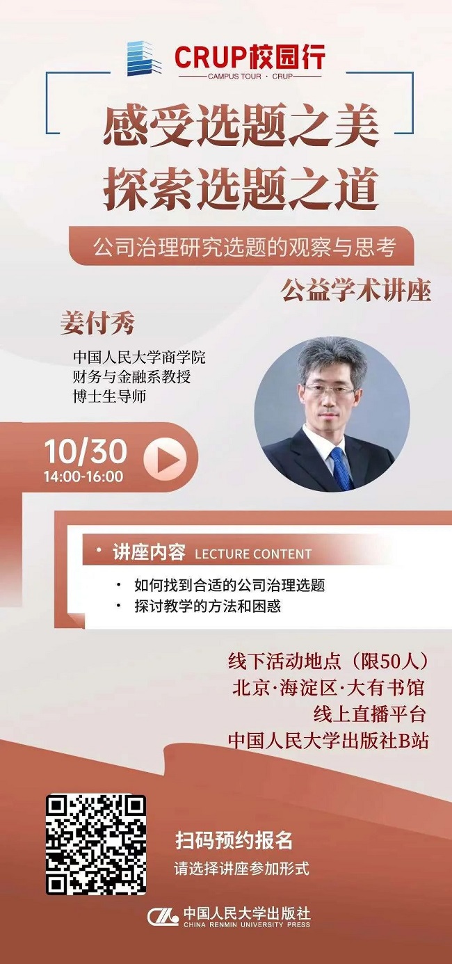 姜付秀中国人民大学商学院财务与金融系教授(二级)博士生导师中国人民大学“杰出学者”特聘教授