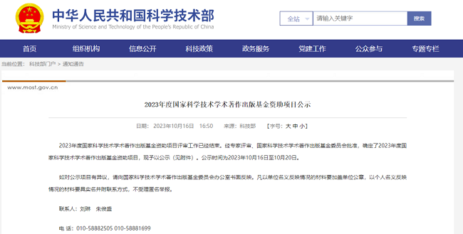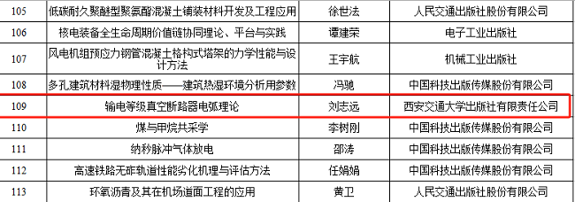 根据《国家科学技术学术著作出版基金管理办法》,经专家评审、国家科学技术学术著作出版基金委员会批准,近日2023年度国家科学技术学术著作出版基金资助项目已公示。其中,西安交通大学出版社出版的《输电等级真空断路器电弧理论》入选。