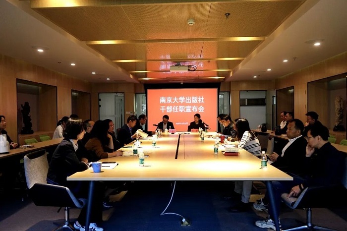 10月22日,南京大学出版社召开干部任职宣布会。南京大学党委副书记,学校办公室主任,党委宣传部部长陈云松、南京大学机关党委常务副书记陈静莅临会议。南京大学出版社有限公司领导班子全体成员与会。会议由陈静常务副书记主持。