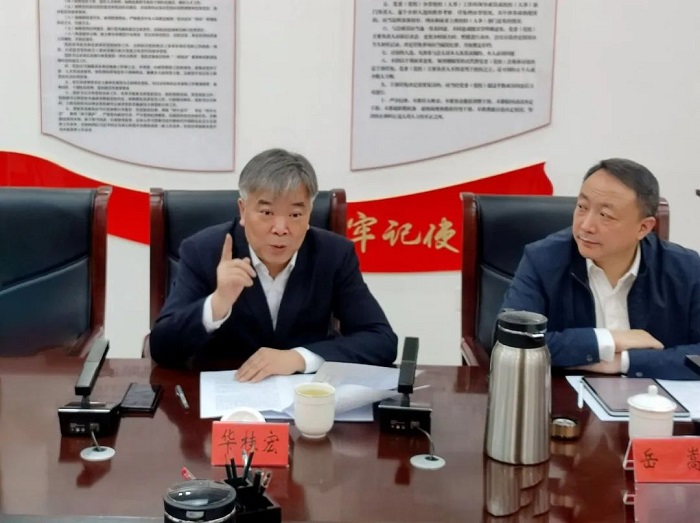 华桂宏、岳嵩率团与伊犁师范大学相关人员座谈交流。伊犁师范大学党委书记蒋海军、校长马合比亚提·斯德合、副校长张维、校长助理王庆华,相关党政部门和学院负责人参加座谈会。