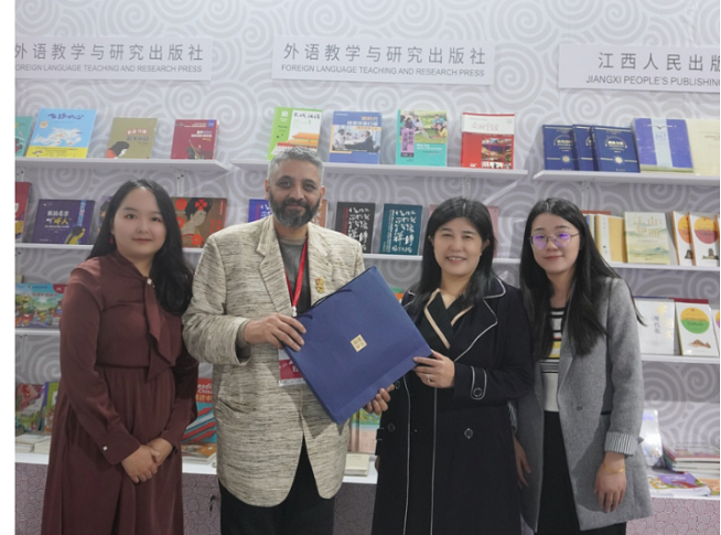 书展期间,外研社与尼泊尔当代媒体与研究中心举办了外研社—尼泊尔中国主题编辑部揭牌仪式暨《中华思想文化术语》系列新书发布和签约仪式,并与尼泊尔桑格里拉(Sangrila)出版社举办了《走遍中国》(1-2级)影印版签约仪式。王芳社长表示,外研社以国际化发展为特色,积极探索并深化国际交流,依托在尼泊尔成立的中国主题编辑部,与多家尼泊尔出版机构开展了卓有成效的合作。未来中国主题编辑部将进一步发挥桥梁作用,与尼泊尔出版、文化、教育机构探索多元合作模式,推动中尼两国在新媒体、数字出版、文化交流、教育服务等方面取得更加丰硕的成果。当代媒体与研究中心总裁凯兰·高塔姆(Kiran Gautam)认为中国主题编辑部在尼中出版合作中发挥了积极作用,将进一步推动两国务实合作与人文交流。桑格里拉出版社社长安比卡•吉瑞(Anibka Giri)表示,外研社在中国拥有广泛的知名度,在语言学习和教育出版行业颇具影响力,是桑格里拉出版社与中国出版社合作的首选。《走遍中国》是一套非常优质的中文学习教材,期待早日在尼泊尔出版落地,帮助更多尼泊尔学习者学习中文。