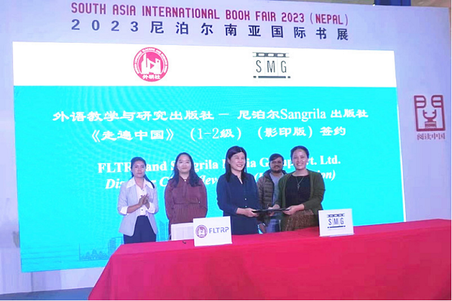 外研社与尼泊尔桑格里拉出版社在展场举办《走遍中国》(1-2级)影印版签约仪式