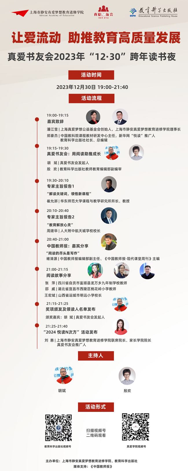 诚邀广大朋友们在12月30日19:00—21:40进入教育科学出版社的视频号观看同步直播
