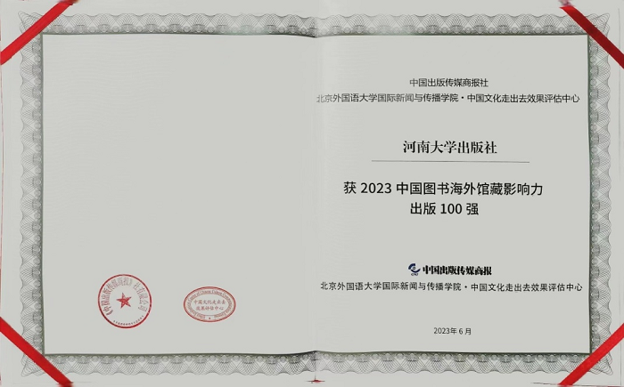 河南大学出版社获“ 2023中国图书海外馆藏影响力出版100强”