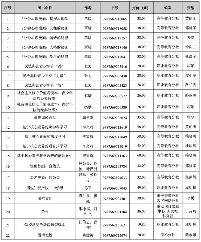 以下是西南大学出版社入选图书信息: