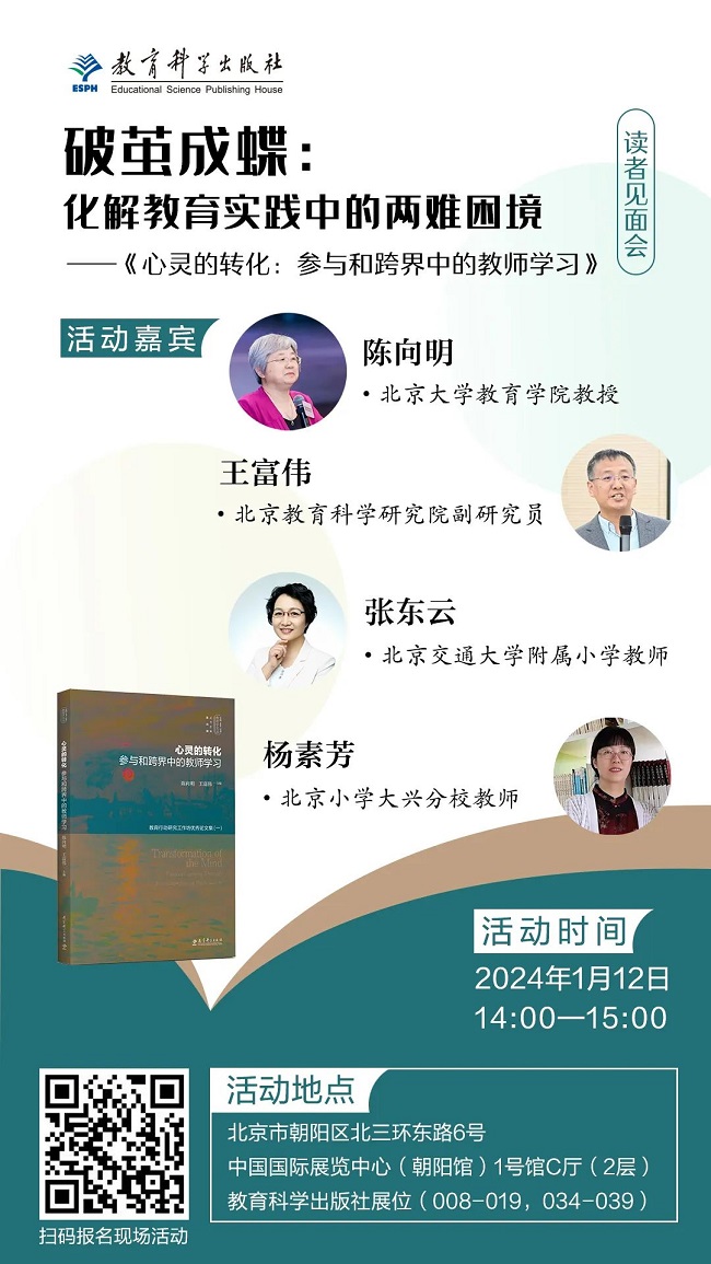 主题: 破茧成蝶:化解教育实践中的两难困境——《心灵的转化:参与和跨界中的教师学习》读者见面会