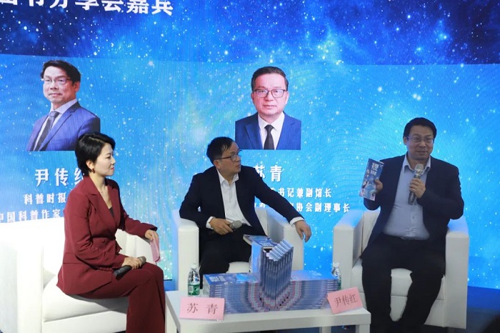 在嘉宾座谈环节,图书作者尹传红与大家分享了《礼赞科学家》的创作初衷、创作历程,并重点阐释了新时代将科学精神、科学家精神融入青少年教育全过程的重要意义。特邀嘉宾苏青从科普阅读推广工作经验以及未来科普阅读的发展方向等进行了深入阐释,并就做好科普出版工作提出了建议。