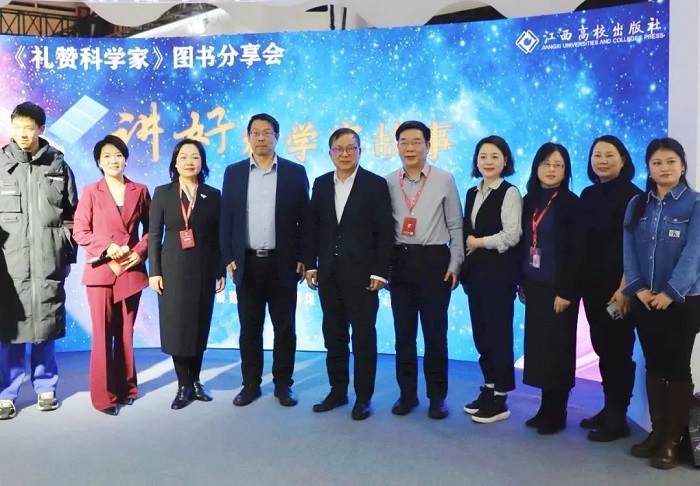 本网讯 2024年1月11日下午,在2024北京图书订货会上,由江西高校出版社主办的“讲好科学家故事,弘扬科学家精神——《礼赞科学家》图书分享会”在中国国际展览中心顺利举行。江西省出版传媒集团有限公司党委委员、副总经理汪维国,科普时报社社长、中国科普作家协会副理事长尹传红,中国科技馆原党委书记兼副馆长、中国青少年科技教育工作者协会副理事长苏青,江西高校出版社党总支书记、董事长、总经理袁幸园等出席本次活动。