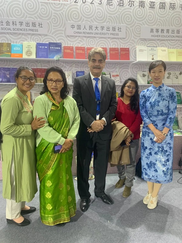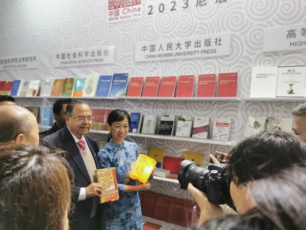 2023年11月21—25日,首届南亚国际书展在尼泊尔加德满都展览贸易中心开幕。在此次书展上,中国人民大学出版社以“中国式现代化研究丛书”作为本次书展的重点展示图书,辅以中国传统文化、历史类等学术图书以及文学作品的尼泊尔文版,受到尼泊尔政要、南亚出版商以及当地读者的喜爱。尼泊尔前政府总理、尼泊尔共产党(联合社会主义)资深领导人贾拉•纳特•卡纳尔到访中国人民大学出版社展台,翻阅精品图书。