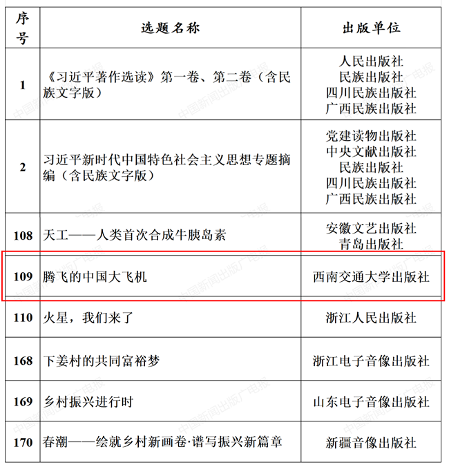 近日,中共中央宣传部办公厅印发通知,公布了2023年主题出版重点出版物选题,西南交通大学出版社出版的《腾飞的中国大飞机》成功入选,实现了该社在该类别项目零的突破。这是西南交通大学出版社长期立足于“大土木、大交通”出版特色,深耕高水平科普选题结出的硕果。