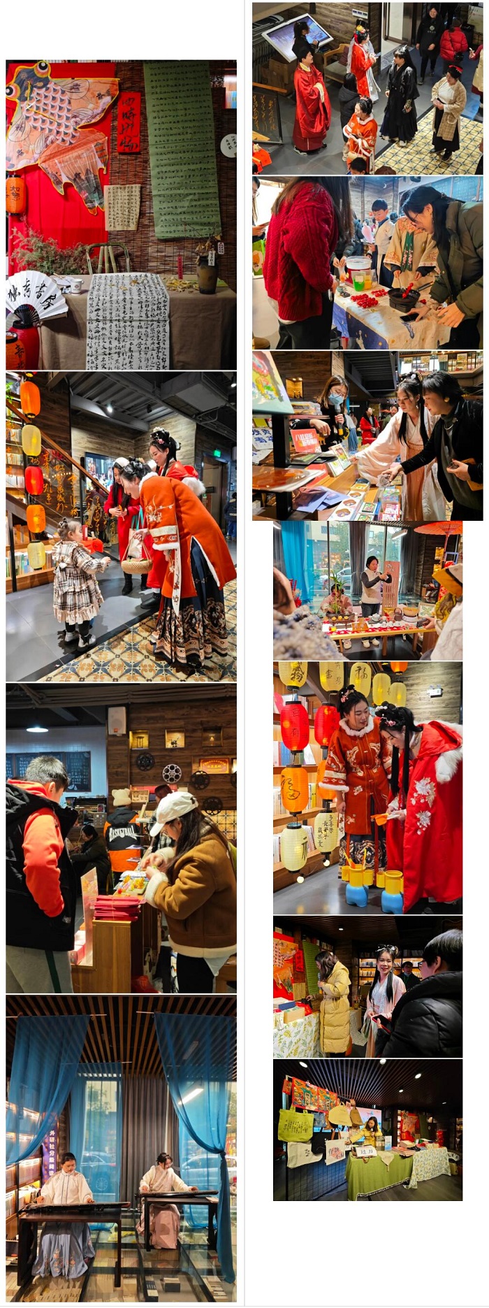 本次“四时风物市集——宋·春归”是独秀书房献给广大读者朋友的一份开年大礼。独秀书房化身为新宋式生活美学体验馆,书房的一、二、三楼分别设置了小食、投壶体验、文创、花艺、手绘、书法、古琴、汉服等摊位,活动吸引了大量市民读者、亲子家庭前来体验,大家纷纷在朋友圈、小红书等社交媒体发布打卡照片。