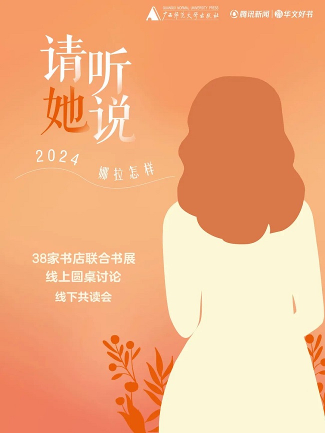 2024年“请听她说”项目活动由广西师范大学出版社和腾讯新闻联合发起,将组织全国38家书店发起联合书展、线上圆桌讨论、线下共读会。