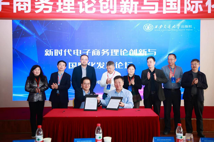 论坛期间,全国电子商务教育与发展联盟和西安交通大学出版社还签订了“电子商务与人工智能系列图书”战略合作协议,双方将共同推动相关领域的教育普及和学术发展,并就“电子商务与人工智能系列图书”的策划、出版和推广展开深入合作。